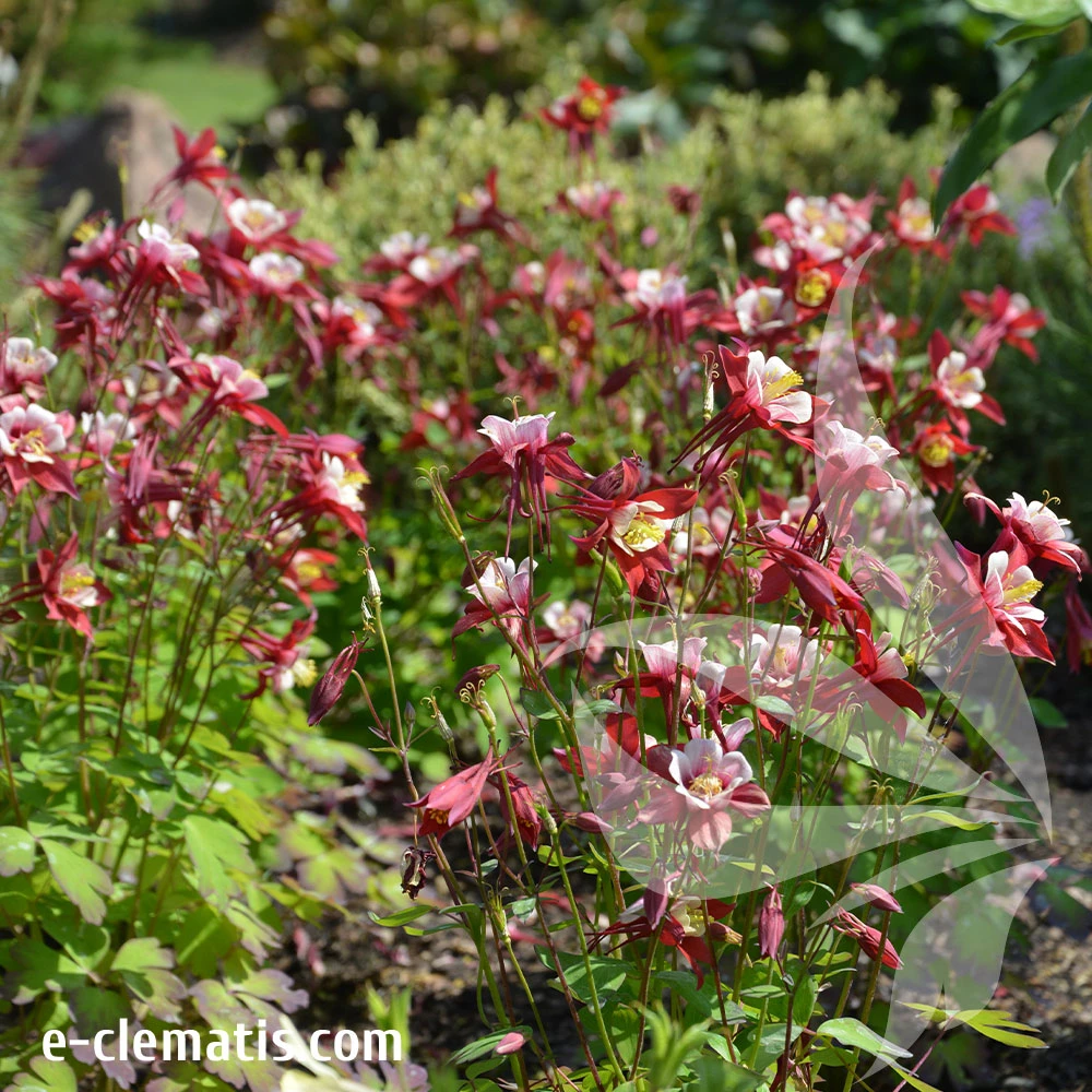 Aquilegia Crimson Star – orlik o biało-czerwonych kwiatach.