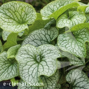 Główną ozdobę rośliny stanowią bardzo duże, sercowate, srebrzysto-zielone liście z zielonym unerwieniem. Liczne, drobne, niebieskie kwiaty pojawiają się w kwietniu i maj. Po kwitnieniu następuje intensywny rozrost kępy.
