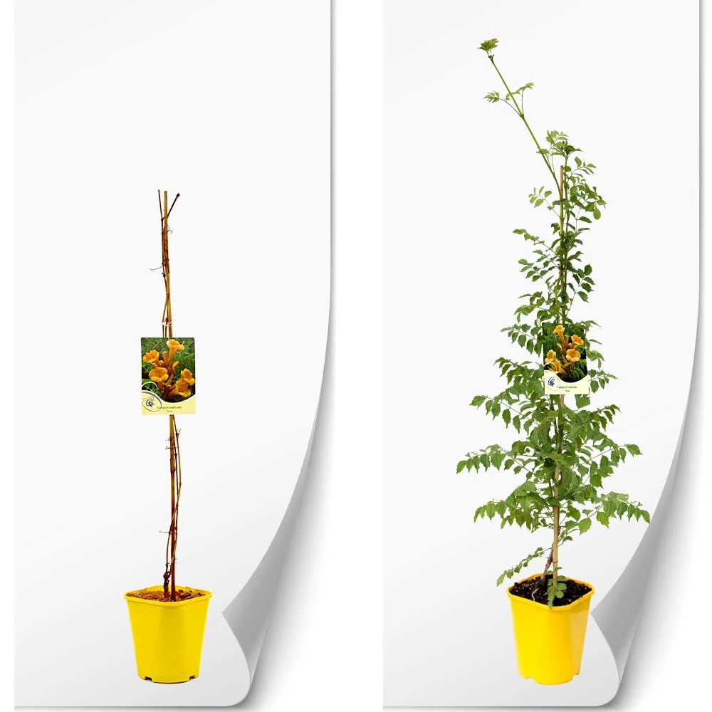W galerii pokazany jest przykładowy produkt z rodzaju Campsis w okresie spoczynku oraz w okresie wegetacji.