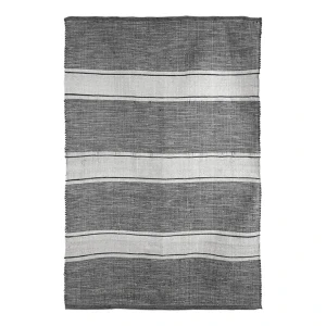 Wzór tworzą poziome pasy w kilku tonacjach szarego, które nadają całości subtelny, nowoczesny charakter. Dywan został wykonany z trwałej, odpornej na warunki atmosferyczne tkaniny, dzięki czemu świetnie sprawdzi się na tarasie, balkonie czy w ogrodowej altanie.