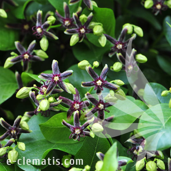 Kwiaty są małe, ale niezwykle kunsztownie zbudowane – gwiazdkowate, fioletowe wewnątrz, a zielonożółte na zewnątrz, z białym owłosieniem. Oprócz niezwykłego wyglądu przyciągają również uwagę przyjemnym, słodkim zapachem. Kwitnie bardzo obficie w czerwcu.