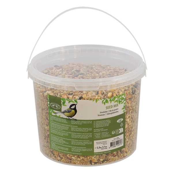 Starannie wyselekcjonowana mieszanka nasion, w wygodnym wiaderku, która dostarczy ptakom wszystkich niezbędnych składników odżywczych. Zawiera między innymi: pszenicę, sorgo, proso, słonecznik, kukurydzę, płatki owsiane, nasiona konopi, nasiona wyki, groszek polny, owies czarny.