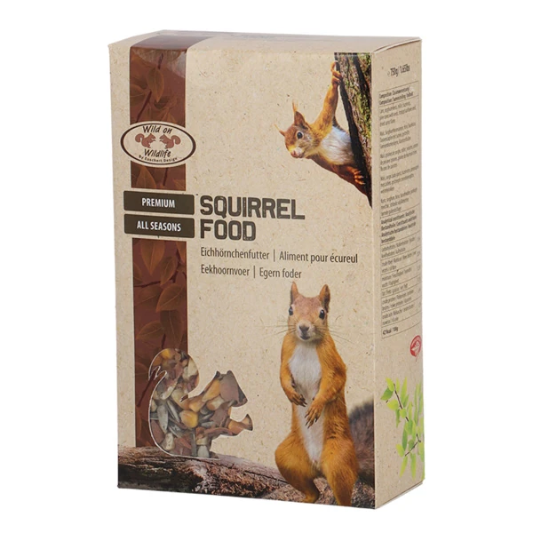 Zbilansowana mieszanka pokarmowa dla wiewiórek, uzupełniająca ich naturalne pożywienie. Zawiera między innymi: kukurydzę, proso,słonecznik, płatki marchwi, orzechy laskowe.
