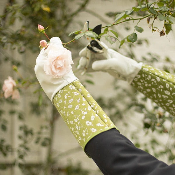 Profesjonalne, damskie, skórzane rękawice ogrodowe z motywem kwiatowym. Miękkie i wygodne. Długie rękawice chronią ręce, nadgarstki podczas pielęgnacji i przycinania róż i innych krzewów kolczastych.