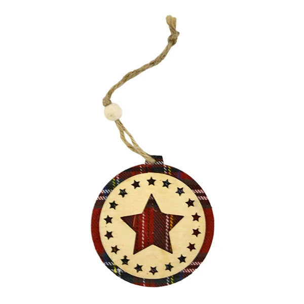 Urocza, oryginalna drewniana okrągła zawieszka z gwiazdką. Idealna do dekoracji choinki, wieńca, okna czy drzwi. Sznureczek ułatwia zawieszenie ozdoby. Klasyczne świąteczne kolory zawieszek, będą pasować do każdej aranżacji. Zawieszka świąteczna to także doskonały pomysł na drobny, ale uroczy prezent dla bliskich.
