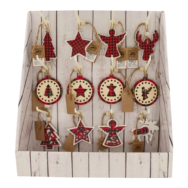 Urocza, oryginalna drewniana zawieszka w kształcie łosia. Idealna do dekoracji choinki, wieńca, okna czy drzwi. Sznureczek ułatwia zawieszenie ozdoby. Klasyczne świąteczne kolory zawieszek, będą pasować do każdej aranżacji. Zawieszka świąteczna to także doskonały pomysł na drobny, ale uroczy prezent dla bliskich.