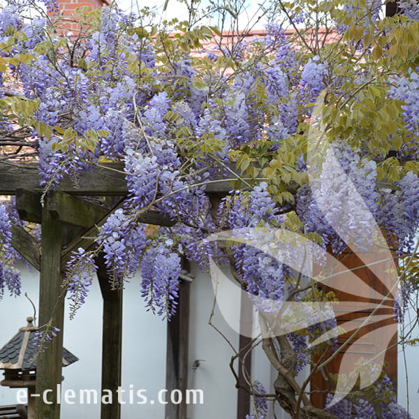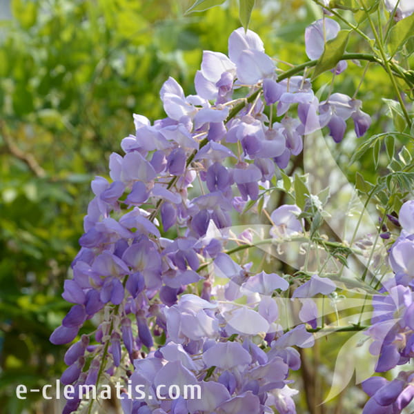 Pięknie kwitnące pnącze o niebieskofioletowych kwiatach z jaśniejszą podstawą, zebranych w długie groniaste kwiatostany (ok. 20-30cm długości).